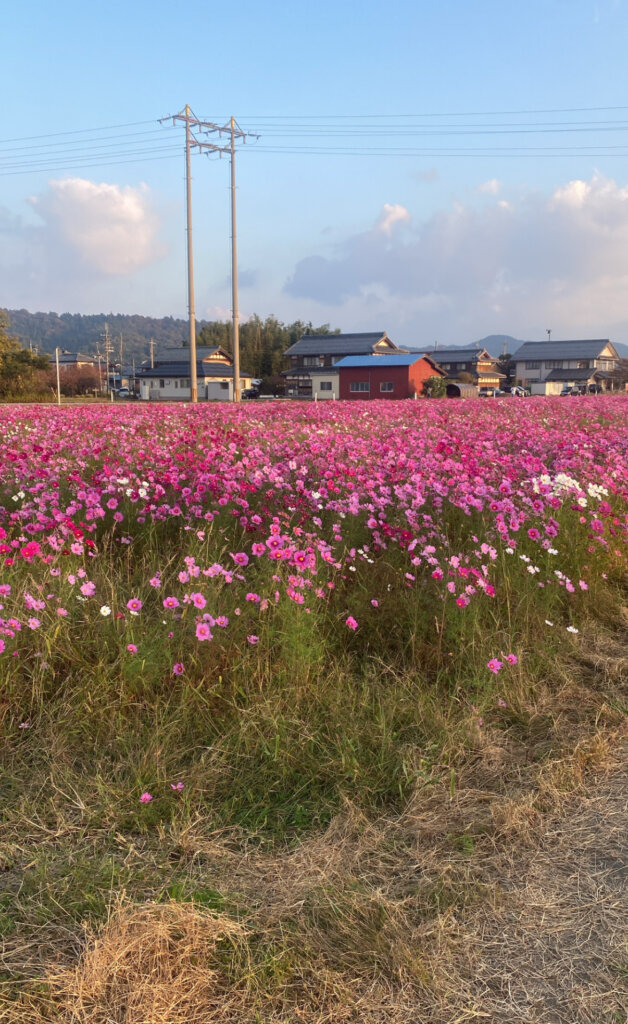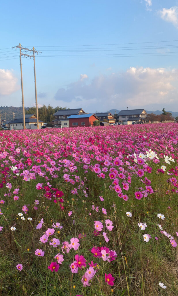実は滋賀県内には、個人で手入れされている小さな畑から地域の名所になっているスポットまで、さまざまなコスモス畑があります。長浜にある個人の畑では、秋になると近所の方々が散歩や写真撮影に訪れ、地元の憩いの場所になっています。